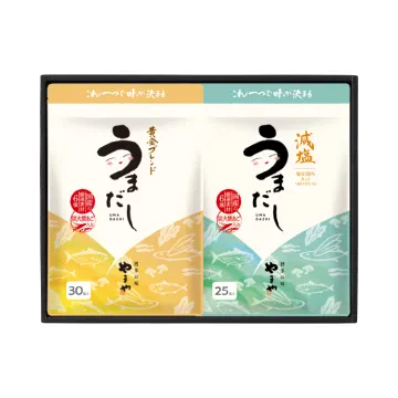 6種類の国産だし素材を贅沢に使った万能だしパック「うまだし」はやまやの人気ギフトです。