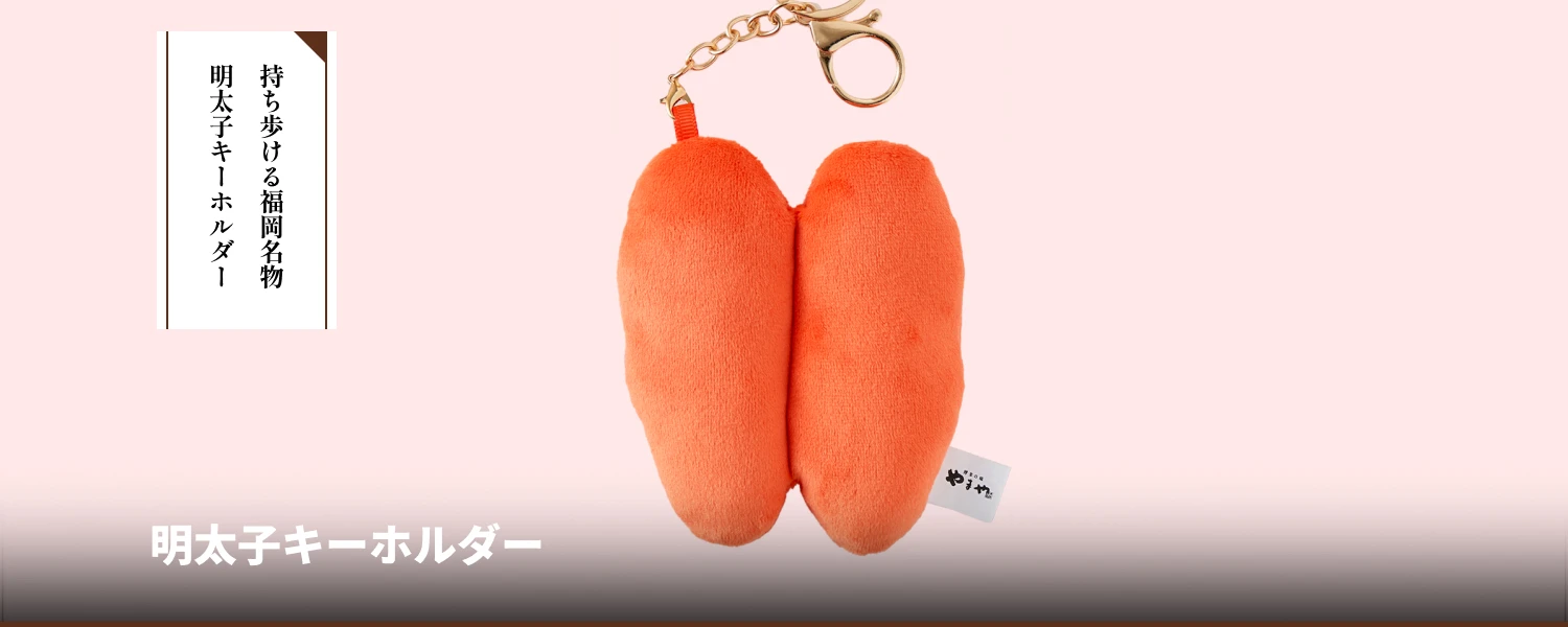 福岡名物・明太子をモチーフにしたキーホルダー。ころんとしたフォルムがかわいく、プレゼントにもぴったりな、福岡らしいユニークなアイテムです。