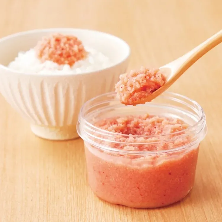 使いやすいように明太子の中身を丁寧に取り出し、蓋付のボトル容器に詰めました。使いたいときにお好きなだけお使いいただけます。